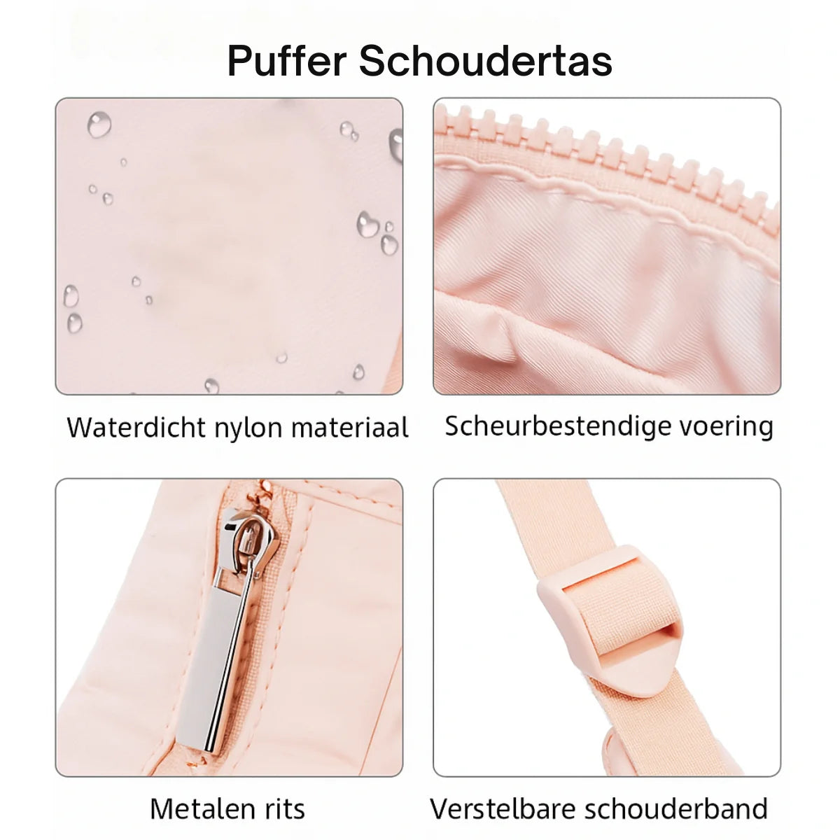 Met haar zachte, gewatteerde vorm en minimalistische design is deze tas de perfecte mix van comfort en elegantie.