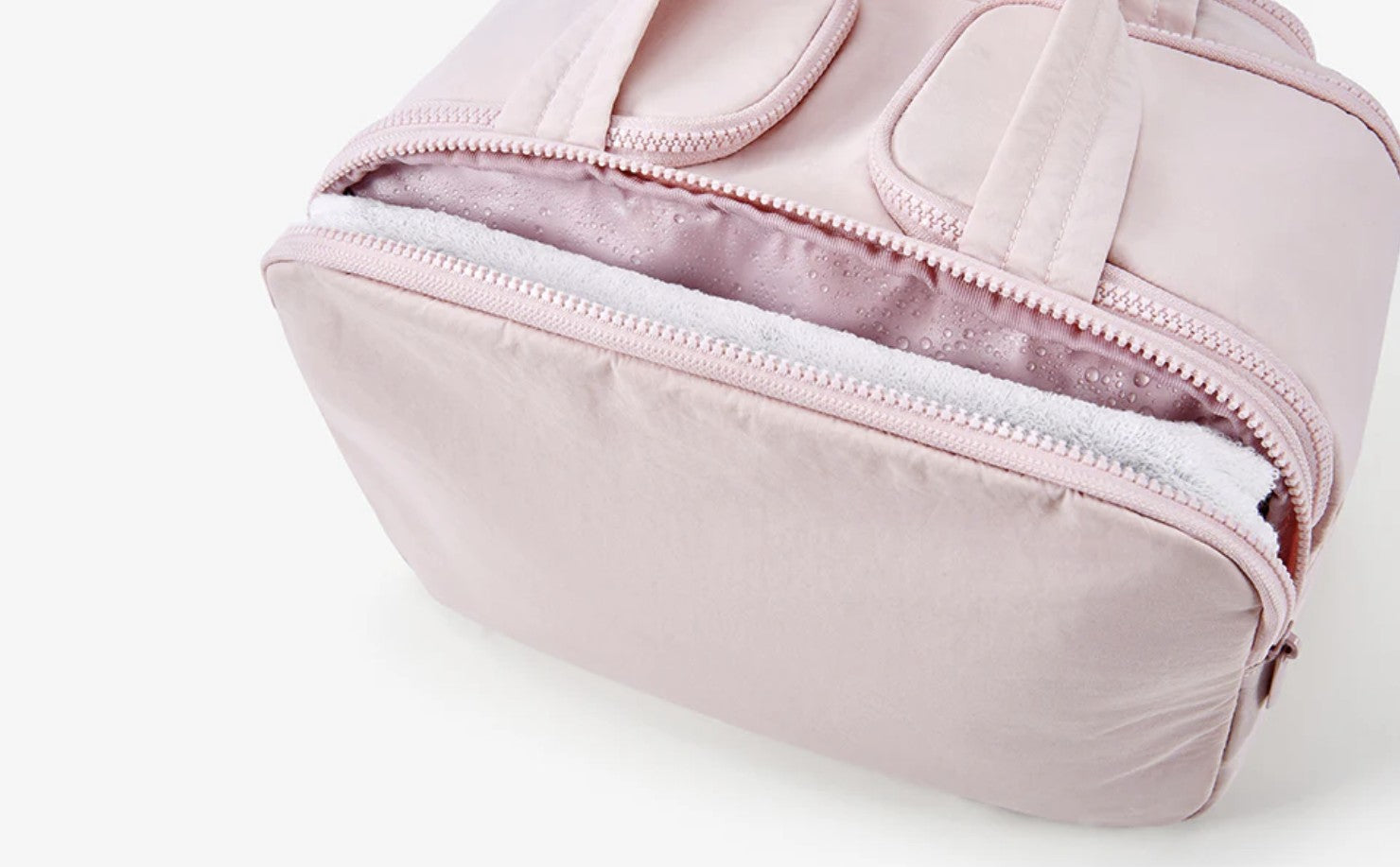 Dankzij de slimme vakverdeling en stevige elastische banden blijven je make-upkwasten, tandenborstel en kleine essentials netjes op hun plek. Gemaakt van hoogwaardig, waterdicht materiaal zodat nat en droog altijd gescheiden blijven.